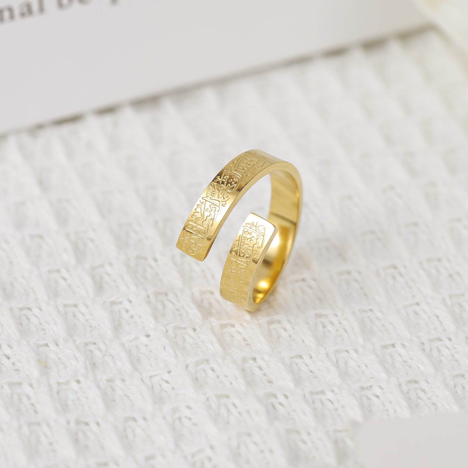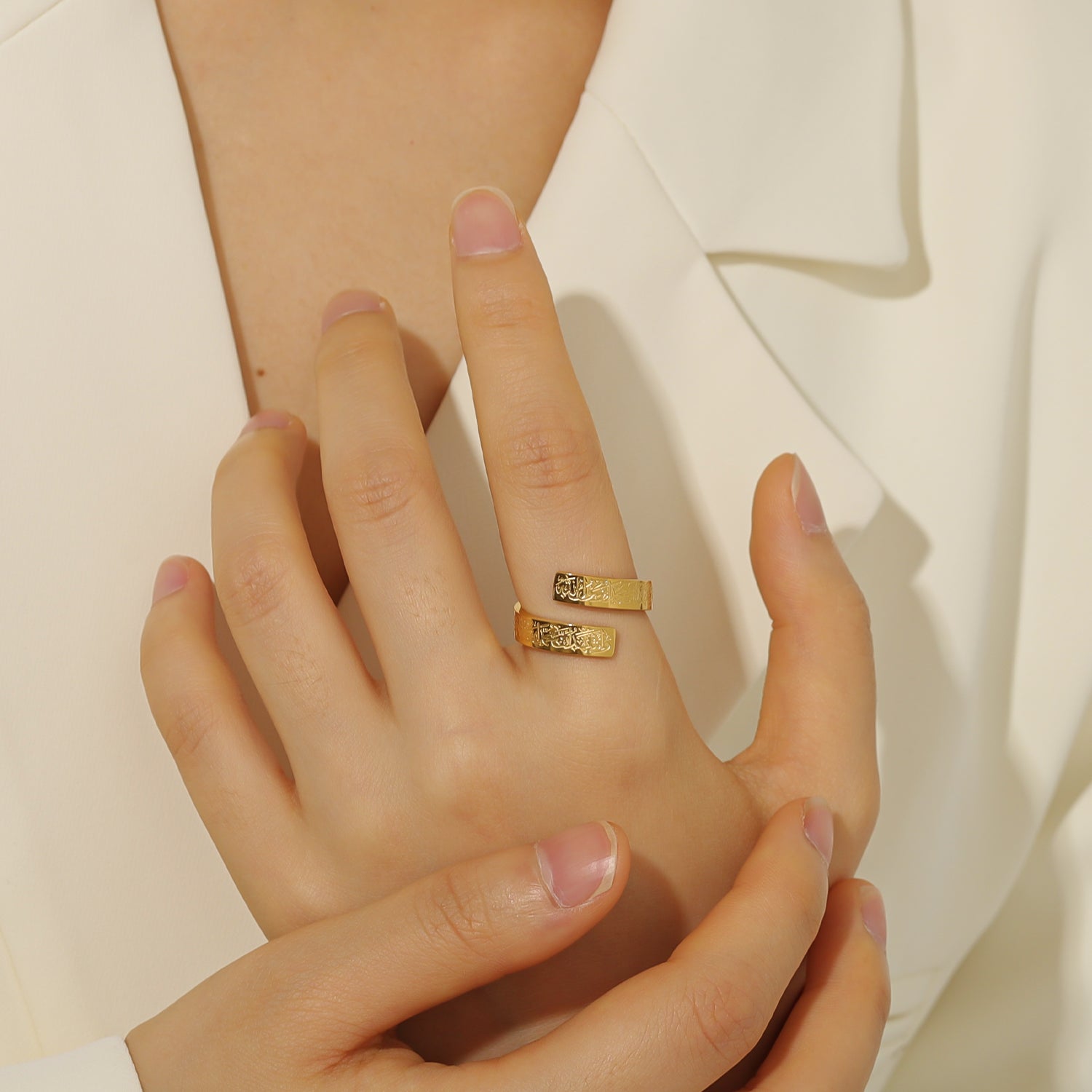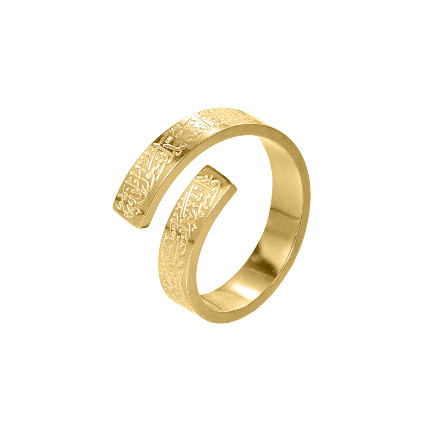 The ring features the word "Alhamdulillah" in Arabic,The Alhamdulillah Scroll Ring is a beautiful and important piece that celebrates the beauty and power of gratitude of Allah in a unique and personal way.