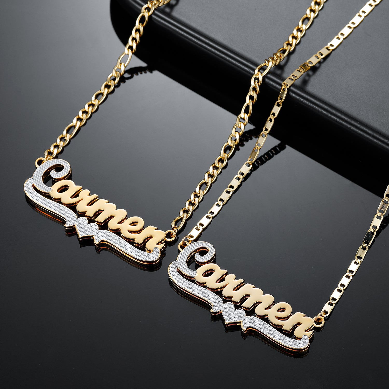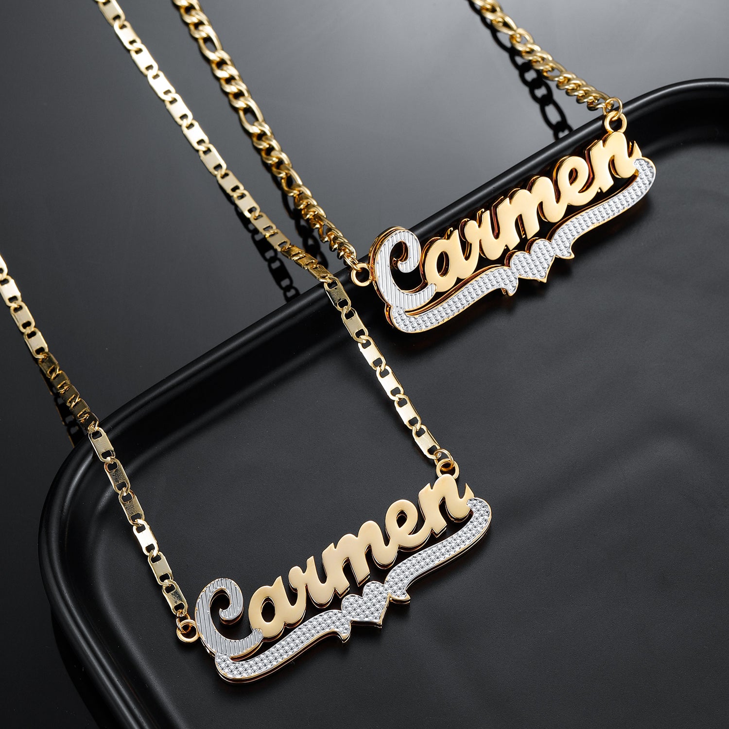 ♥Wenn Sie die Gesamtwirkung des Namens sehen möchten, geben Sie bitte zuerst eine Bestellung auf und senden Sie mir dann eine Nachricht, um zu sehen, wie der Name/die Welt/das Datum in der Halskette aussehen wird. Ich werde schnell ein MOCK-UP für Sie entwerfen.