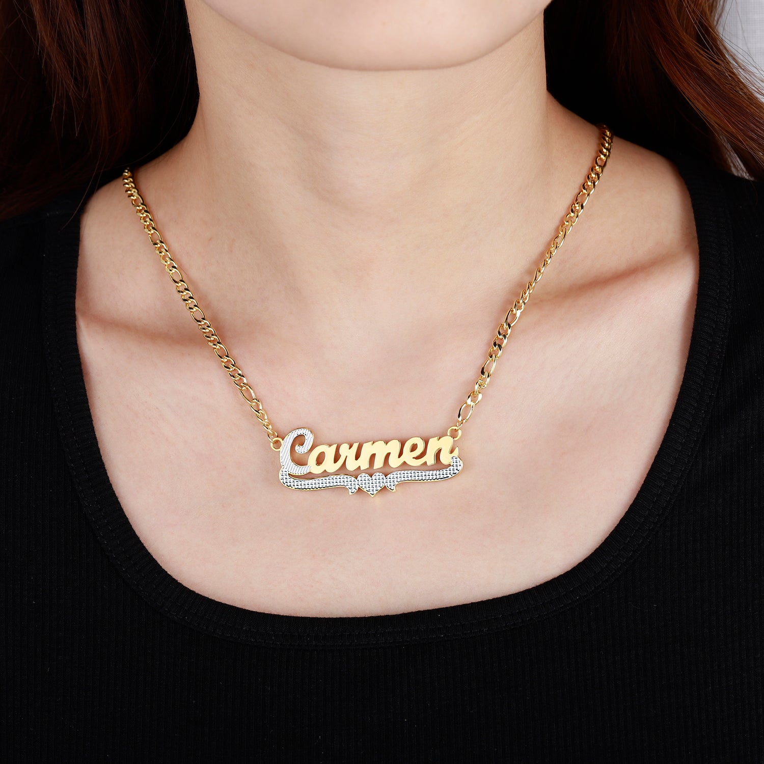 Zweifarbiges herzförmiges Namensschild QN20362
